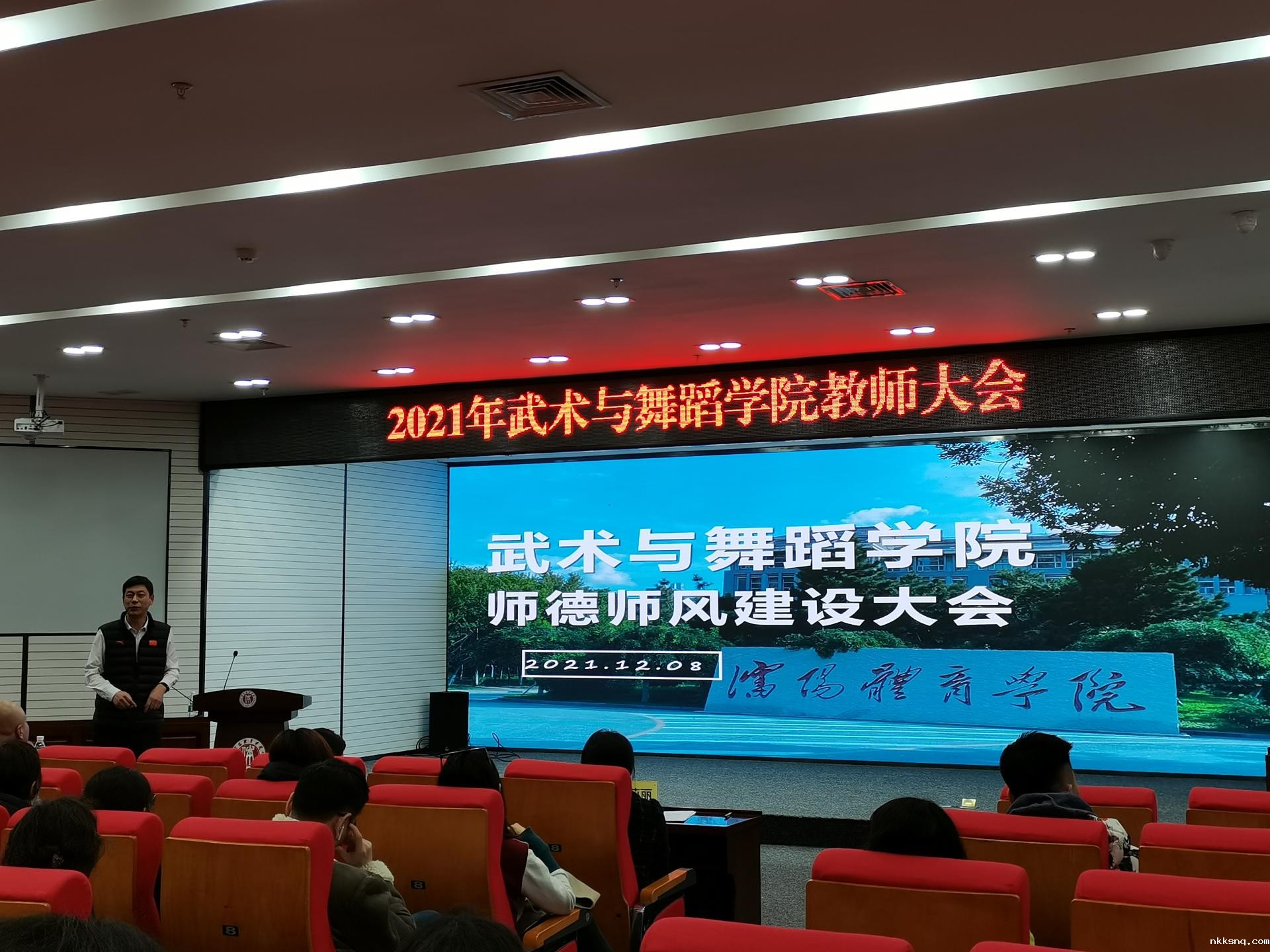 为进一步加强师德师风建设,筑牢教师思想防线,12月8日下午,武术与舞蹈学院党总支在图书馆二楼报告厅召开师德师风建设大会,会议由党总支书记于文军主持,学院全体教职工参加。